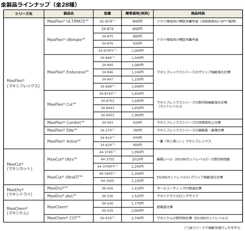 今回当社では、手の汗を31%減少させる世界初の新技術を活用した作業用手袋や、わずか14gの軽量手袋、視認性に優れた蛍光カラーの手袋、耐切創と耐薬品機能を兼ね備えた手袋など、これまでの国内のグローブ販売では扱ってこなかった全く新しいタイプのATG社製の高機能手袋4シリーズ全28種を販売いたします。当シリーズの販売で、初年度販売総額1億円を目指します。
