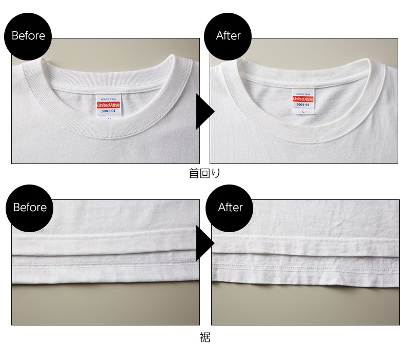 洗ってもよれにくい首周りのリブの丈夫さは発売当初から評判で、リーズナブルなプライスながら手間を惜しまず、品質を追求するUnited Athleクオリティの特長の一つです。(90cmはステッチ無し)
