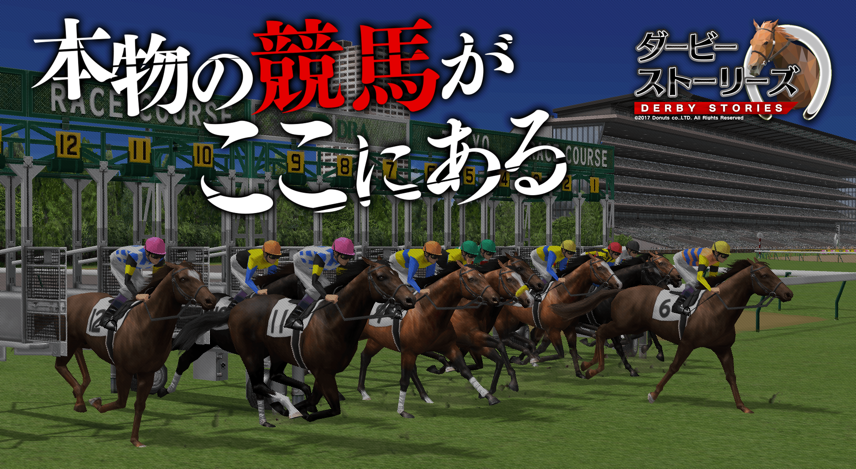 『ダービーストーリーズ』は「本物の競馬がここにある」をコンセプトに作られた、競走馬育成シミュレーションゲームです。ゲーム内のレースシーンには、競馬実況で有名な中野雷太アナウンサーが起用され、音声実況がおこなわれます。