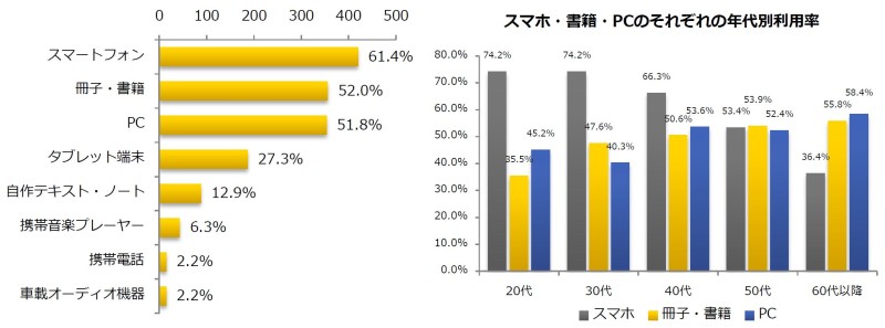 活用している勉強ツール、最多は「スマートフォン」61.4%。40代以下はスマホメイン。50代はスマホと冊子・書籍を両立。