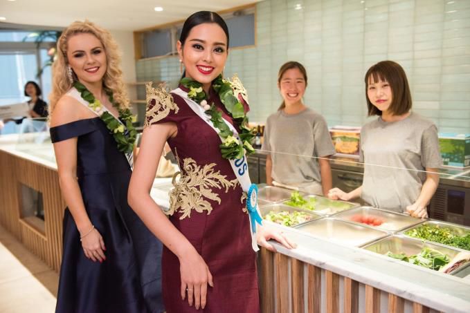 ハワイ生まれのサラダ専門店「アロハサラダ」の日本第1号店となる「アロハサラダ 原宿」(所在地:渋谷区神宮前4)の2017年12月7日のグランドオープンに先駆け、「ミス・インターナショナル2017(11月14日開催予定)」のために日本に来日している世界大会出場者より、ハワイ代表のコートニー・コールマンさんなど計7名の出場者の方を店舗にご招待し、11月4日(土)に試食会を行いました。