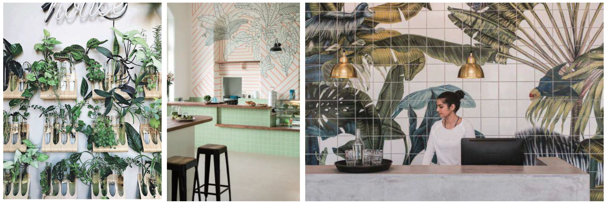 椰子をモチーフとしたボタニカル柄の内装と、ガラスウィンドウから差し込む日差しがハワイの雰囲気を感じさせます。