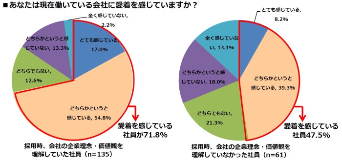 採用時「企業理念・価値観」を理解していた社員の71.8%が会社に愛着を感じていると回答