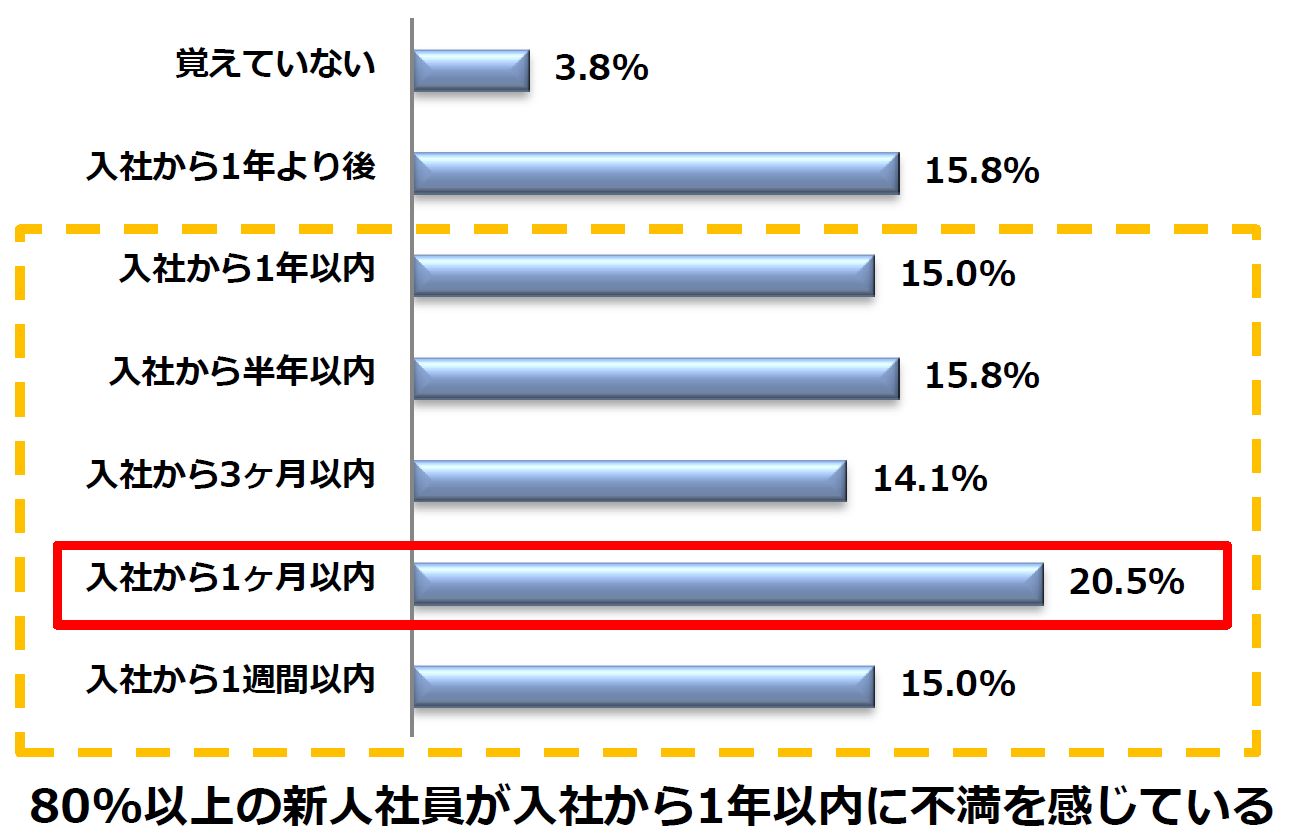 会社に不満を感じ始めた時期の最多は「入社から1ヶ月以内」