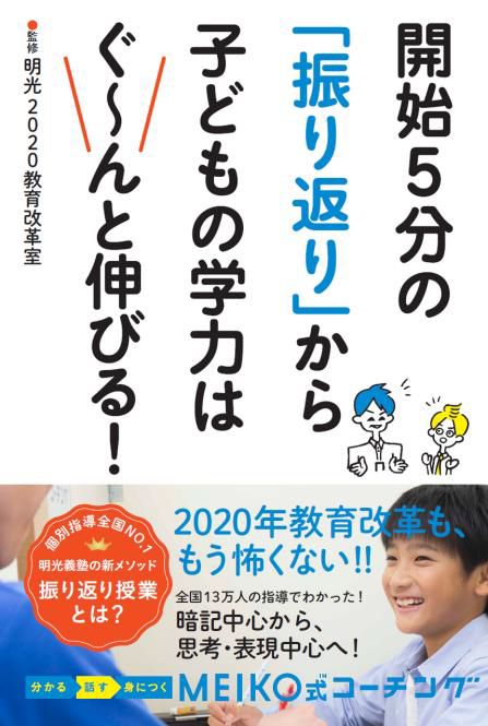 株式会社明光ネットワークジャパン(本社:東京都新宿区、代表取締役社長:田上 節朗)が全国展開する学習塾「明光義塾」のプロジェクト「明光2020教育改革室」が先進的学習メソッドや「2020年教育改革」を解説した書籍『開始5分の「振り返り」から子どもの学力はぐ~んと伸びる!』を2018年1月19日(金)に主婦の友社より出版いたします。
