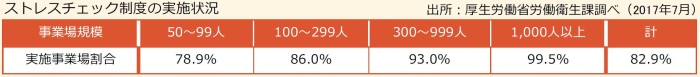 厚⽣労働省の発表によると、昨年6⽉末時点で、実施が義務付けられた事業場のうち、300⼈以上の事業場では9割が実施していますが、50〜99⼈規模の事業場は8割を下回っています。