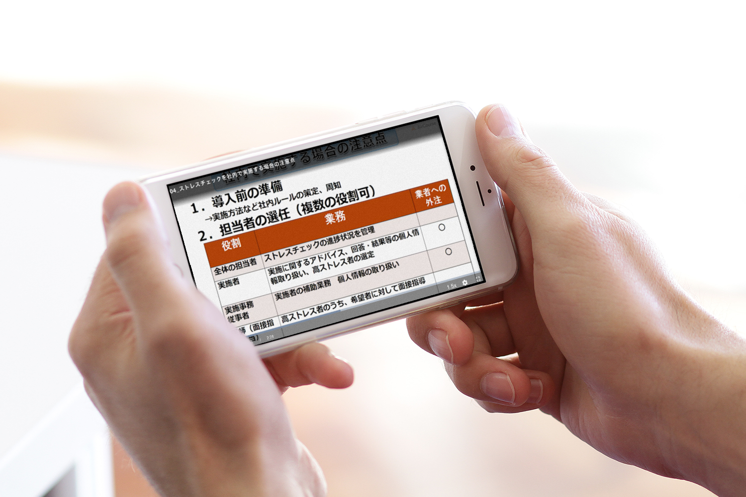 導入ガイドでは、企業の人事、労務担当者、経営者や現場での実施者向けに、ストレスチェック制度の導入ルールと罰則を正しく理解し、導入から実施、厚生労働省への報告ができるようになります。結果の活用方法では、集団分析の活用から職場環境改善まで、実例も紹介し、現場実施者と人事・労務担当者側でのポイントを正しく、わかりやすく、学べます。職場のヘルスケア対策として、ストレスチェックをより意義ある形で実践出来るよう紹介しています。
