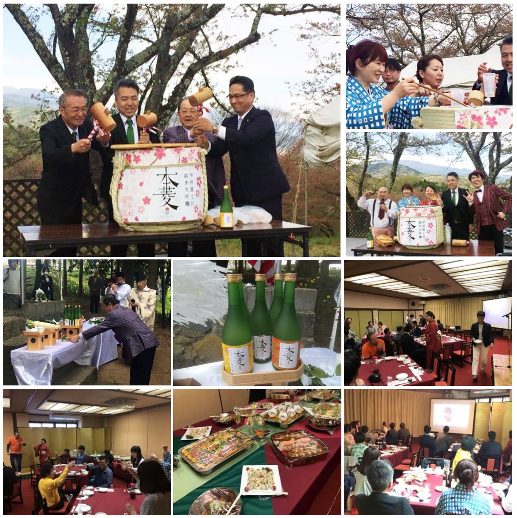 スタートから約10ヶ月。「まちいくふじかわ」プロジェクト第2期の完成披露発表会を行いました。この日は天候にも恵まれ、大法師公園さくら祭りに訪れた多くのお客様に2年目の本菱を振舞いました。その後、同町にある「いち柳ホテル」に場所を移し、プロジェクトメンバーを中心とした多くの人たちとともに、2年目の本菱の完成を祝いました。