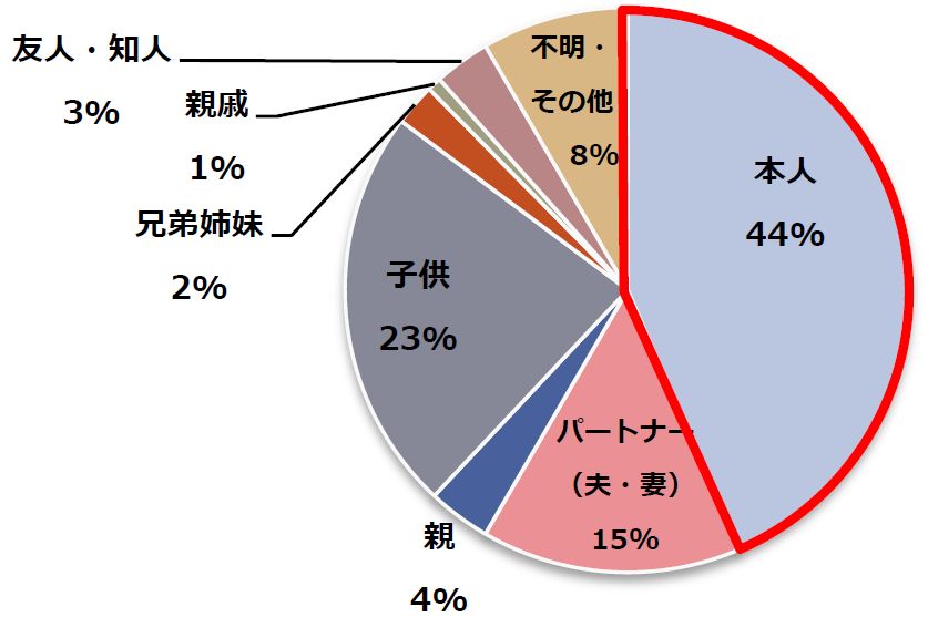お問い合わせの最多は患者様ご本人から。介護しているパートナーやお子様からの問い合せも増加傾向。