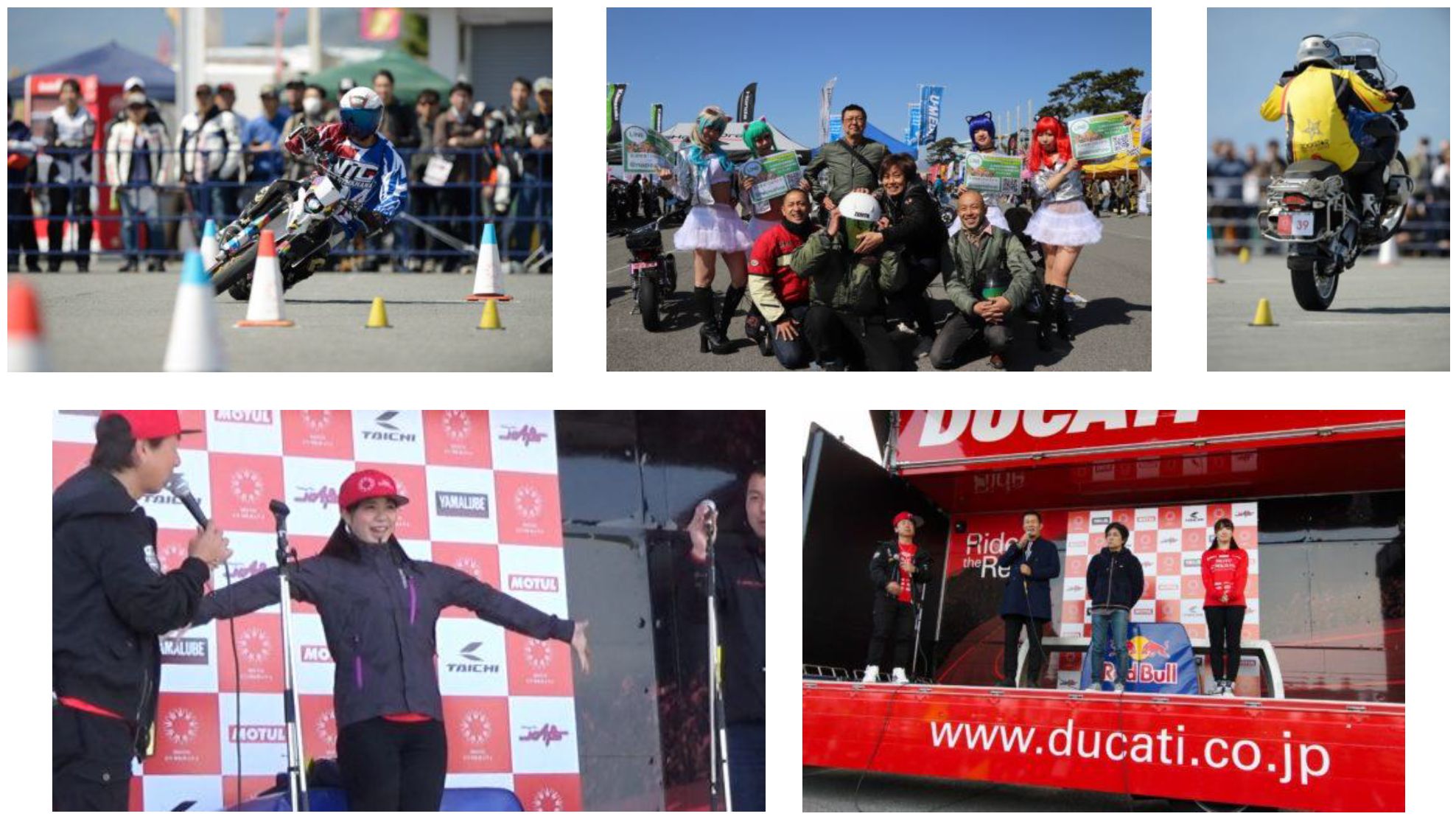 大会当日は4,000名を超える観客の方々に来ていただき、原田哲也さんのデモ走行や、須藤元気さん、原田哲也さん、梅本まどかさんによるトークショーの他、メーカーのブース出展、ニューモデル・絶版車試乗会など様々なイベントで大いに盛り上がりました。2019年は更にバージョンアップしたモトジムカーナを皆さまにご披露できればと思います。