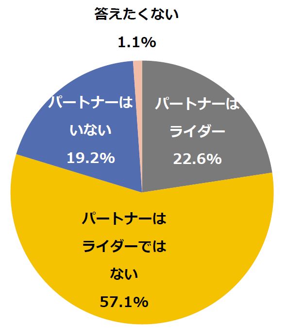 現在のパートナーがライダーかどうか聞いたところ、「パートナーはライダー」と回答した方は22.6%で、「パートナーはライダーではない」と回答した方が57.1%という結果となりました。