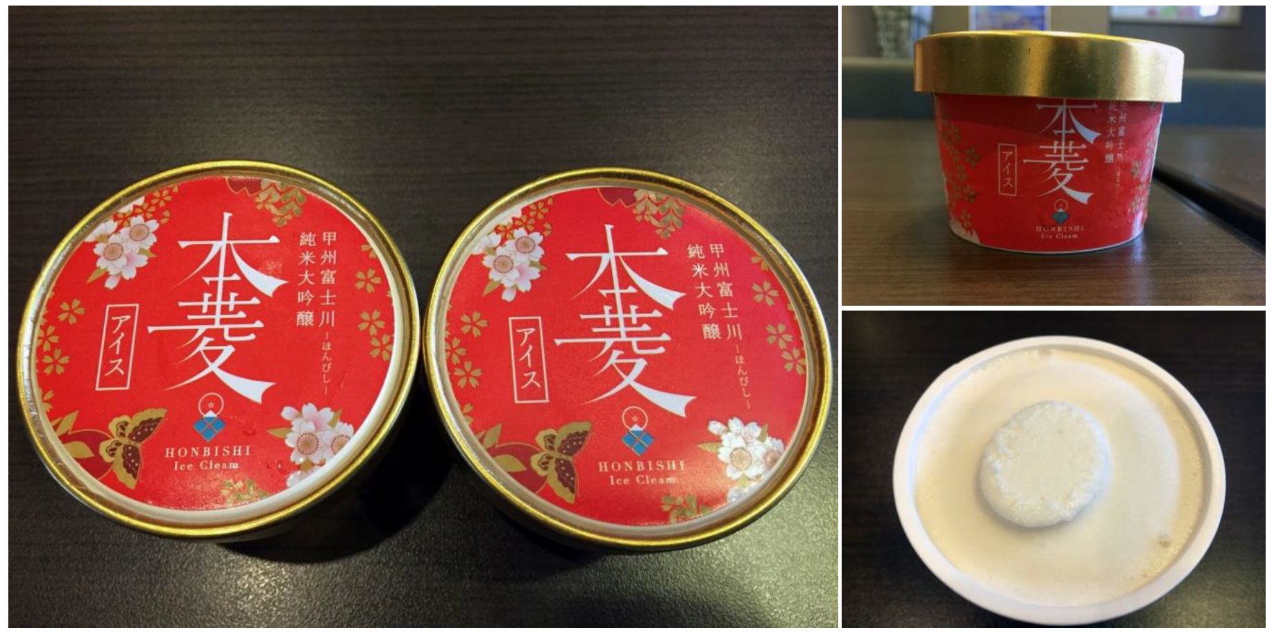 日本酒「本菱」と、原料となる酒米「玉栄(たまさかえ)」の酒粕を用いてつくられた本菱のカップアイスは、地元富士川町の「いち柳ホテル」 代表兼料理長の保坂直樹氏が試行錯誤を繰り返した末に開発。酒粕の豊かな香りとバニラの甘さが絡み合う、上品な味に仕上がりました。口に入れた瞬間に広がる酒粕の香り。その後、のどごしで「本菱」の豊かな味を楽しめる後を引くおいしさです。製造は静岡県富士市の柚子庵が担当。パッケージは「本菱」のラベルデザインを担当し、「まちいくふじかわ」の第1期からのプロジェクトメンバーである山梨在住のアートディレクター岡谷泰士氏がデザイン。今年は、400個限定(酒粕がなくなり次第終了)で、いち柳ホテルで購入可能です。