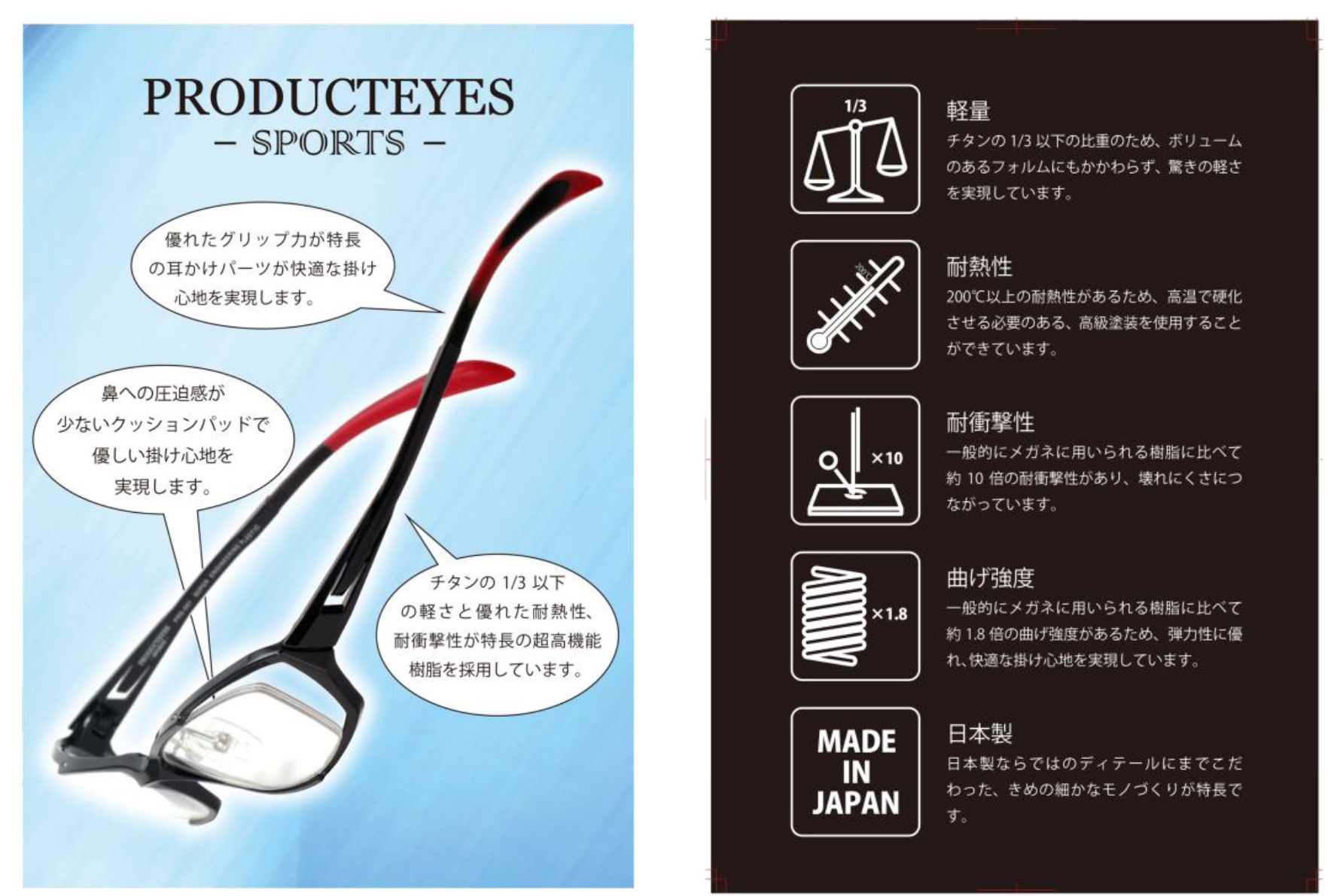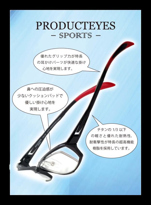 「PRODUCTEYES -SPORTS-」は、きめの細かなディテールにまでこだわった日本製のフレームです。