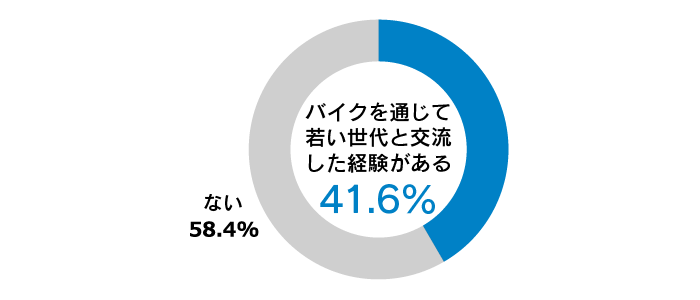 60歳以上の男性ライダー221名に、バイクを通じて若い世代(30歳以下)と交流した経験はありますか、と聞いたところ、41.6%の方が若い世代とバイクを通じて交流したことがあると回答しました。