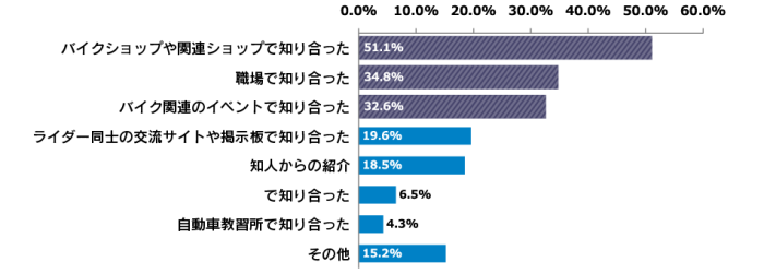 またその他の自由回答として多かったのが、「ツーリングで知り合った」という方で、全体の10%強の回答となりました。