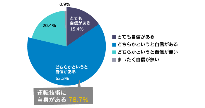 約8割が運転技術に自信があると回答、一方運転技術は10年前と比べて4割が低下したと実感
