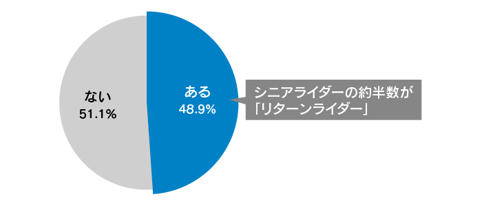・1年以上バイクに乗らずに、再度乗るようになった『リターンライダー』の割合は48.9%