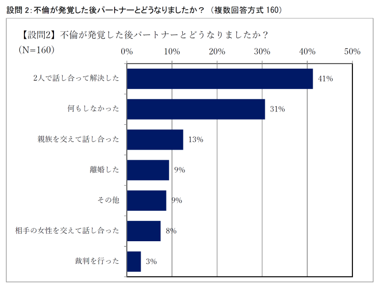 設問2:不倫が発覚した後パートナーとどうなりましたか?(複数回答方式160)
