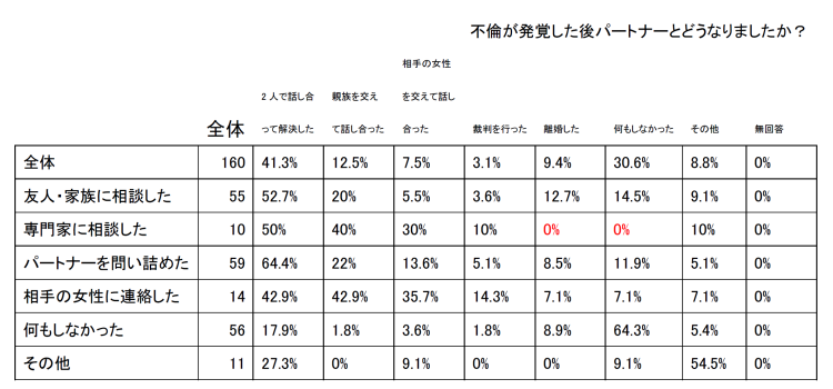 設問:配偶者の不倫が発覚した後、パートナーとどうなりましたか?
