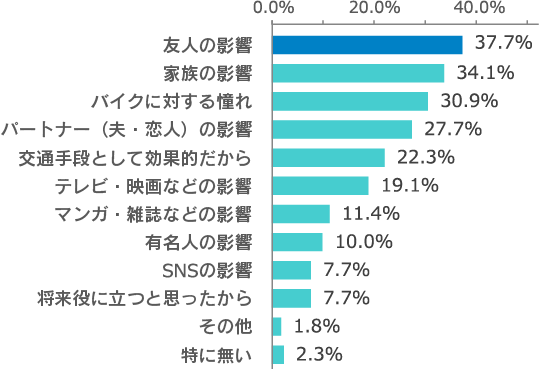 ・バイクを運転するようになったきっかけ、最多は「友人の影響(37.7%)」