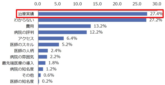 病院選び、最も重視するのは「治療実績(27.4%)」