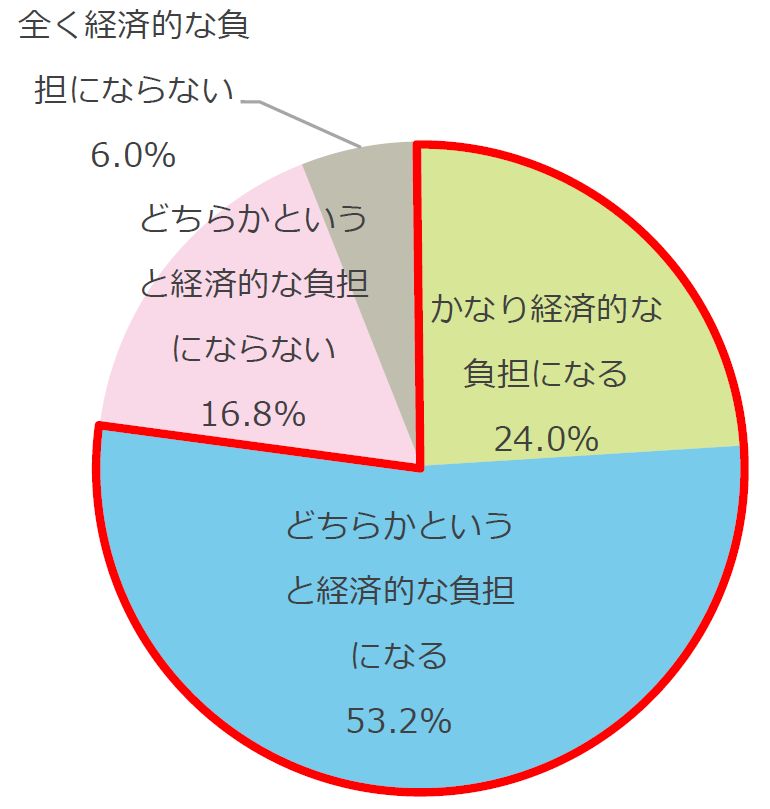 自身の子どもや親戚の子どもにお年玉をあげることに対して経済的負担になるか聞いたところ、「かなり経済的な負担になる」と回答した方が24.0%で、「どちらかというと経済的な負担になる(53.2%)」と合わせて、77.2%の親はお年玉が経済的負担になっているということがわかりました。