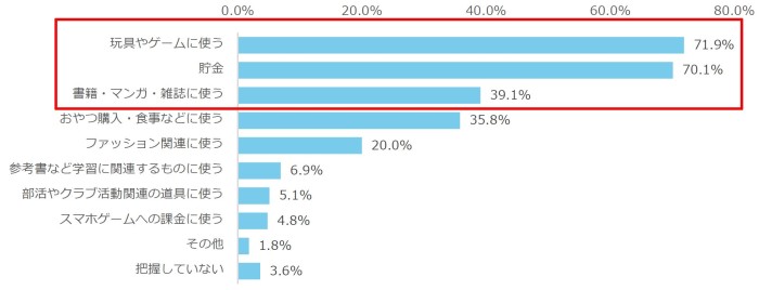 お年玉の使い道、1位は「玩具やゲームに使う(71.9%)」、2位は「貯金(70.1%)」