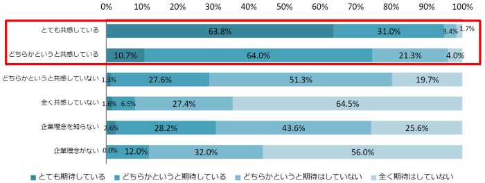 企業理念に対しての共感度が高いビジネスパーソンほど、所属する会社の将来に期待している