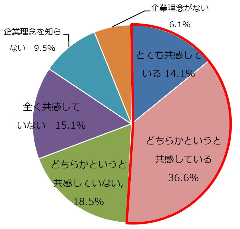 ビジネスパーソンの2人に1人は、会社の「企業理念」に共感している!