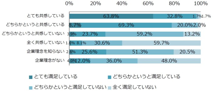 企業理念に「とても共感している」ビジネスパーソンの95%以上は所属する会社に満足している