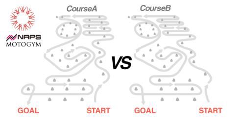 従来のジムカーナ競技は舗装路面にパイロン等で設定されたコースを競技車両が1台ずつ走行し、タイムを競うモータースポーツですが、「ナップスモトジム」は、全く同じツインコースを両者同時にスタートし、一騎討ちのトーナメント形式でタイムを競い合う、視覚的にも直感的にも楽しめる新たなモータースポーツです。
