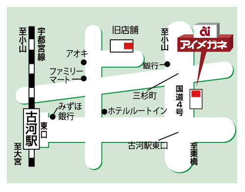 アクセス:JR古河駅 徒歩14分 国道4号線沿い
