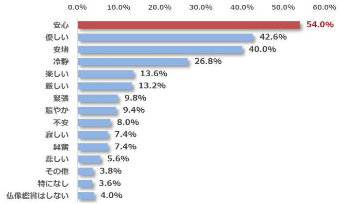 仏像鑑賞時の気持ち、第1位は「安心(54.0%)」