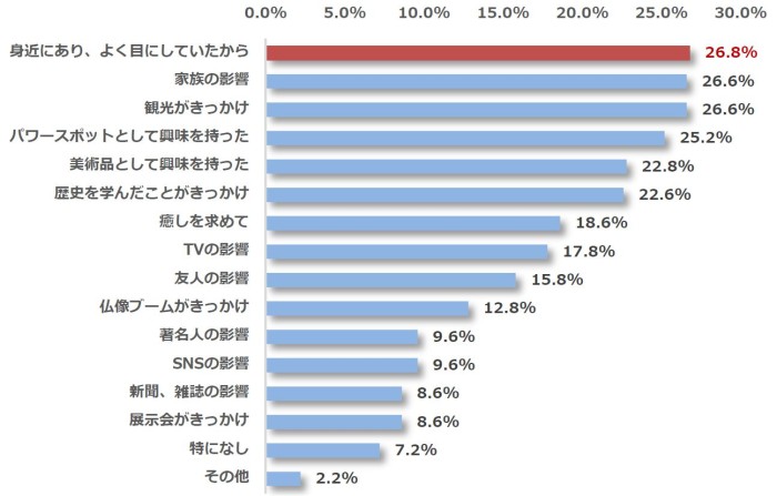 ・仏女になったきっかけ最多は「仏像やお寺が身近にあり、よく目にしていたから(26.8%)」