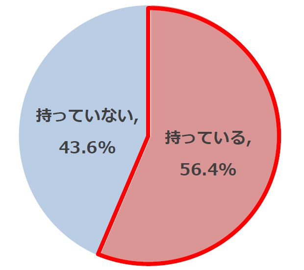 次に、仏関連のアイテムを所有しているか聞いたところ、「持っている(56.4%)」、「持っていない(43.6%)」と「仏女」の2人に1人以上が、何らかの仏関連アイテムを所有していることが分かりました。