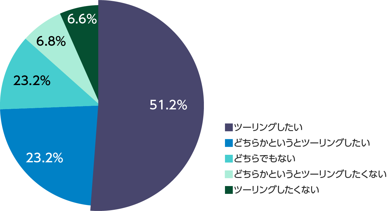 全国の男女500名のバイクライダーを対象に、今年のGWにツーリングに行きたいと思うかを聞いたところ、「ツーリングに行きたい(51.2%)」、「どちらかというとツーリングに行きたい(23.2%)」と合わせて74.4%のライダーが、最大10連休となる2019年のGWにツーリングに行きたいと考えていることが分かりました。