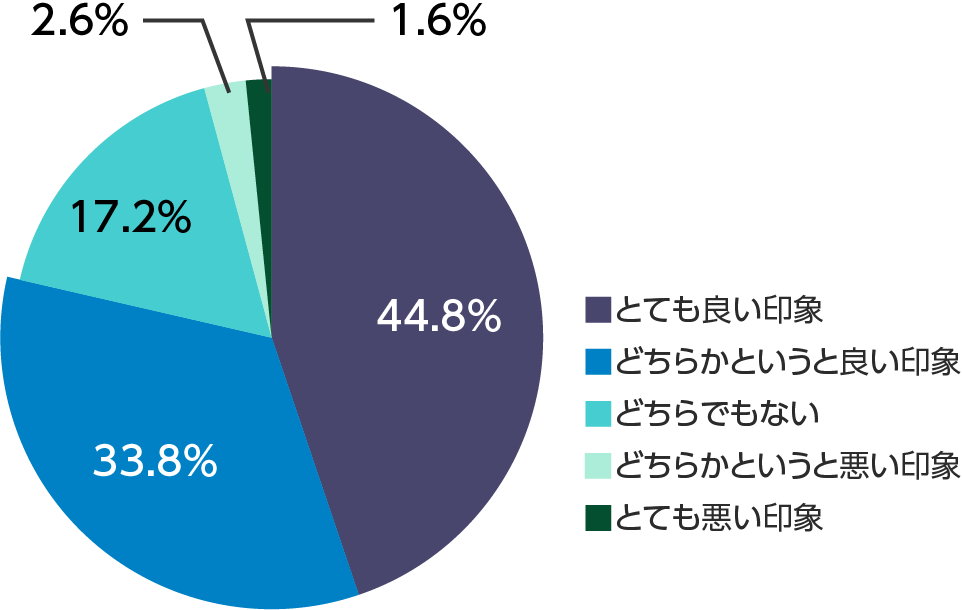 「ヤエー」に対してどのような印象を持っているかを聞いたところ、「とても良い印象(44.8%)」、「どちらかというと良い印象(33.8%)」と合わせて78.6%のライダーは好印象を持っていることが分かりました。一方で、「とても悪い印象(1.6%)」、「どちらかというと悪い印象(2.6%)」と悪い印象に感じているライダーはわずか4.2%という結果になりました。