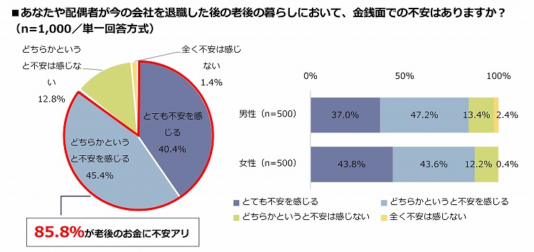 85.8%が、老後の暮らしに金銭面で不安ありと回答