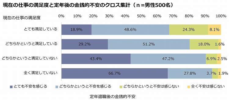 現在の仕事に満足していない人ほど、退職後の金銭的不安が強い傾向あり