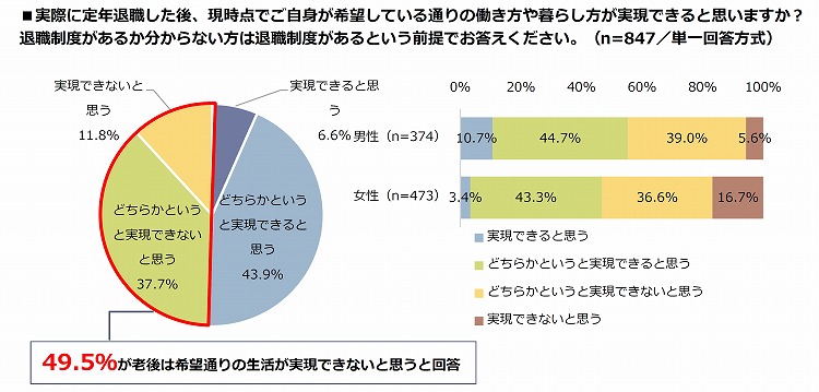 「定年後は希望通りの働き方や暮らし方ができないと思う」49.5%