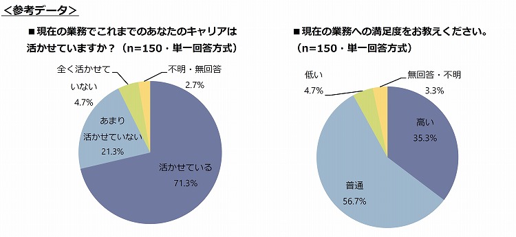 こうした結果から、現在の業務に自身のキャリアを活かせているかどうかと、業務への満足度には一定の関係性が見られ、自身のキャリアをどのように活かしながら再就職できるかが、満足のいく再就職先選びのポイントとなると考えられます。