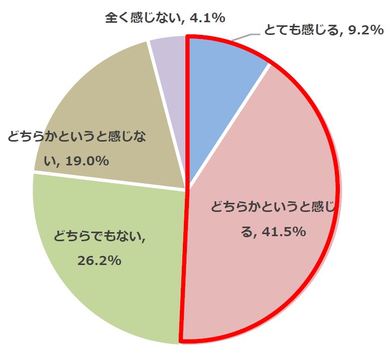聴力の低下を感じると回答したシニア(60歳以上)294名を対象に、音が聞こえにくいことでストレスを感じるか聞いたところ、「とても感じる(9.2%)」、「どちらかというと感じる(41.5%)」と合わせると50.7%、2人に1人が聴こえにくいことに対してストレスを感じていることが分かりました。