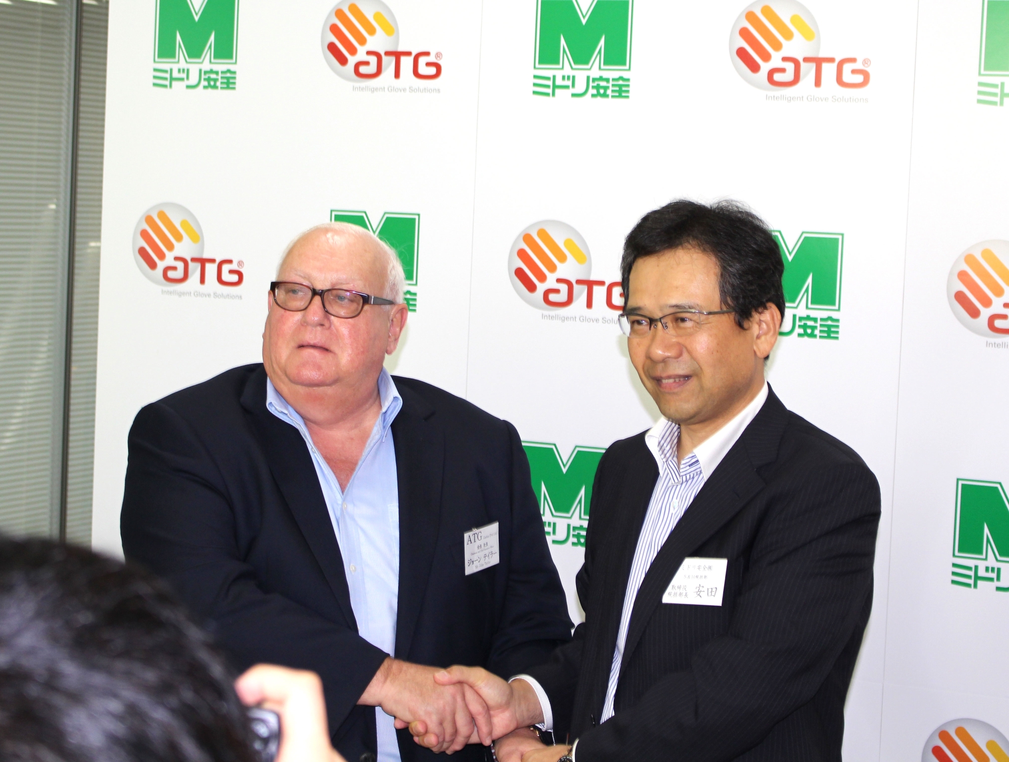 (写真 左:ATG社 Chairman and CEO John Taylor、右:ミドリ安全株式会社 S&H統括部 部長 安田一成)
