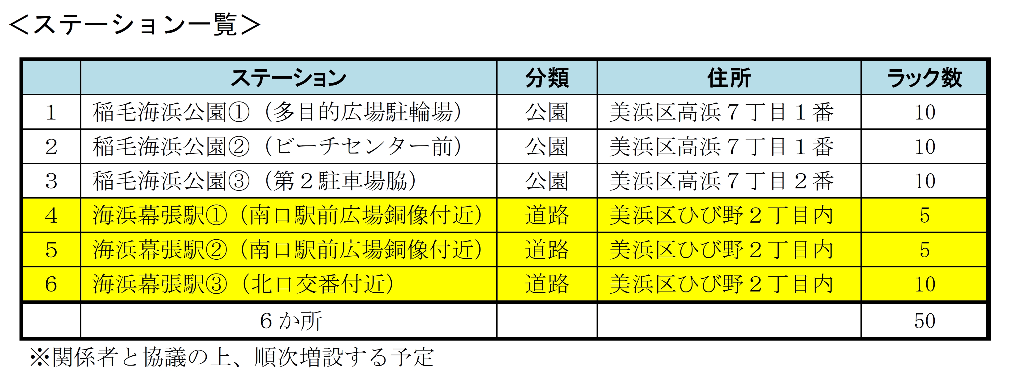 海浜幕張駅周辺の3ヶ所のステーション