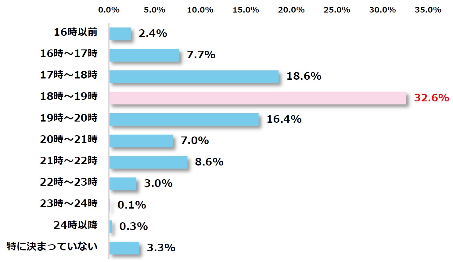 最後に、「部活、習い事」が終わった後の子どもの帰宅時間を聞いたところ、(※毎日異なる場合は一番遅い時間帯を指定)最多回答は「18時~19時(32.6%)」、次に「17時~18時(18.6%)」、「19時~20時(16.4%)」と続きました。