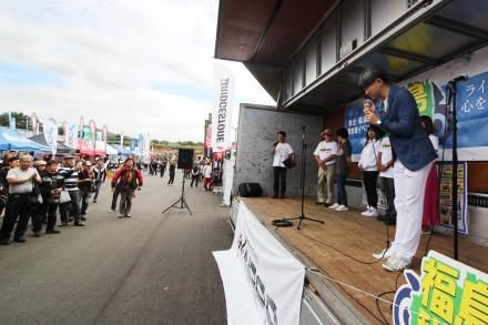 イベント当日は、雨の予報があったにもかかわらず、多くのライダーやご家族の方に参加いただき、メインイベントのサーキット体験走行会のチケット交換所は、開場前から長蛇の列となるほどの盛況ぶりでした。その他、豪華ゲストによるトークショーや様々なバイクイベント、エビスサーキットの名物ドリフトタクシー、50社を超えるメーカーブースと試乗会メーカーにもご参加いただき、参加者の皆様にオートバイの魅力を存分に感じていただきました。なお、当イベントの収益金の一部は二本松市に寄付させていただきます。