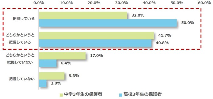 受験費用の把握、中学3年生の保護者は73.7%、高校3年生の保護者は90.8%