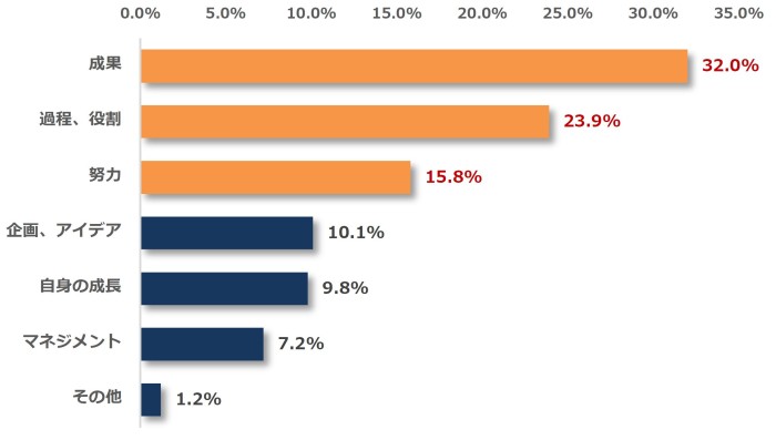 ・仕事上で最も評価して欲しいこと最多は「成果(32.0%)」