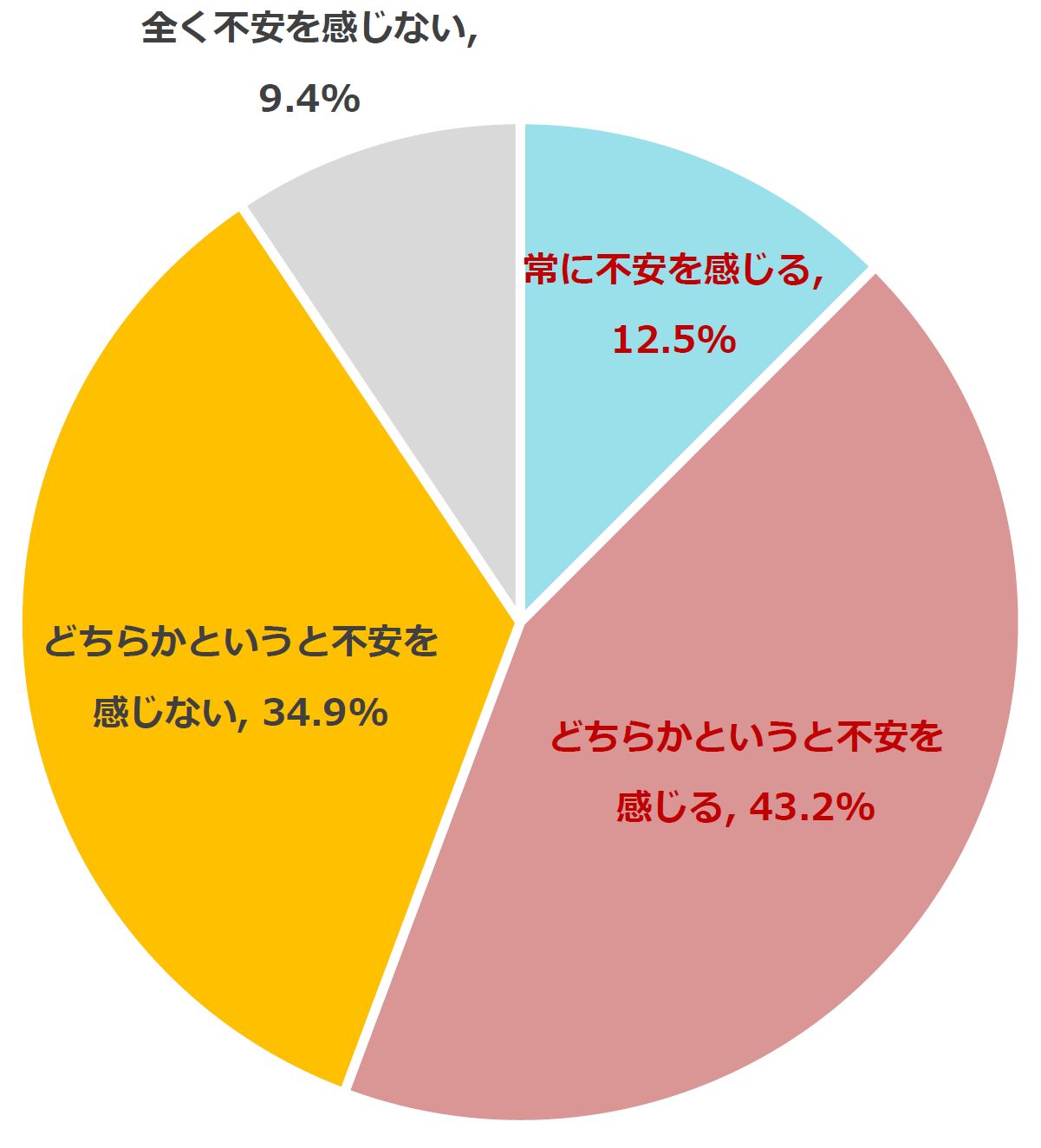 承認欲求が満たされないことで不安を感じることがあるか質問したところ、「常に不安を感じる(12.5%)」、「どちらかというと不安を感じる(43.2%)」と合わせると55.7%、ビジネスパーソンの2人に1人が承認欲求を満たされないことに不安を感じていることが分かりました。