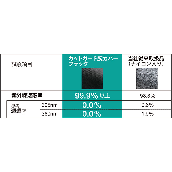 紫外線遮蔽率比較試験で99.9%以上を実現し、高いUVカット効果を発揮します。汚れが目立ちにくいツヌーガ®ブラックを初採用。